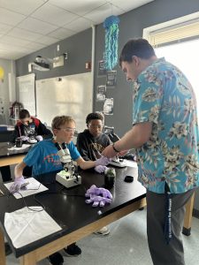 Mr. Snyder’s middle school scientists explored the microscopic world with hands-on stations using two types of microscopes: compound scopes for detailed cellular views and dissection scopes for a broader look.