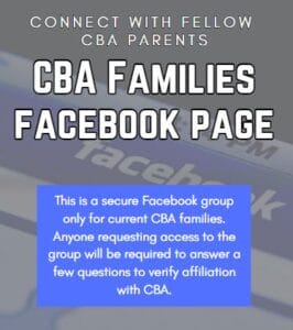 Whether you attend an event, or step into a volunteer role, we hope you’ll find a wonderful group of active, committed parents fostering a strong community for our students, faculty, staff and families! We encourage everyone to join the CBA Families Facebook Page to connect with other families! The page is open to all parents/guardians of students enrolled at CBA.