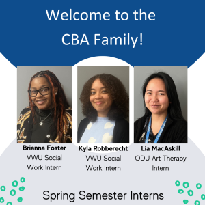 Last but certainly not least, we are delighted to welcome Lia MacAskill, our Art Therapy Intern from ODU/EVMS. Lia is currently pursuing her master’s degree in counseling and art therapy. After transitioning from a pre-med background, she discovered the powerful healing role of creativity and is excited to bring art therapy into the lives of CBA students, helping them express themselves in meaningful and productive ways.