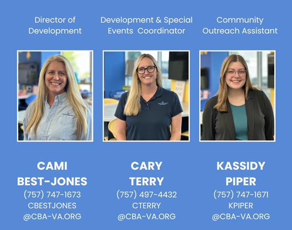 Questions? Contact Cary Terry, development and special events coordinator, at cterry@cba-va.org.